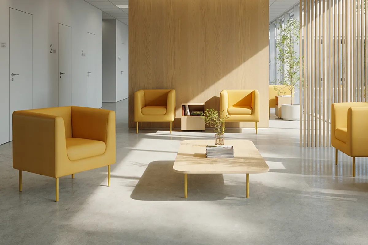 Quadra bringt einen modernen Blick auf klassische Lounge-Sitzmöbel. Die Serie umfasst einen Sessel sowie Zwei- und Dreisitzer-Sofas, die mit Schwerpunkt auf Komfort und Vielseitigkeit entworfen wurden. Für die Serie Quadra sind rechtwinklige Formen mit fein abgerundeten Kanten und schlanke Metallbeine charakteristisch, die die gesamte Konstruktion optisch entlasten. Dank neun Farben des Gestells und des breiten Angebots an Polsterungen lässt es sich leicht an jedes Interieur anpassen. Die Verbindung von attraktivem Preis und zeitlosem Design macht Quadra zur idealen Wahl insbesondere für öffentliche Räume – von Rezeptionen über Cafés und Hotellobbys bis hin zu Entspannungsbereichen in Büros.