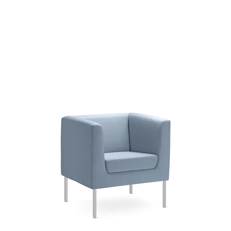 Quadra bringt einen modernen Blick auf klassische Lounge-Sitzmöbel. Die Serie umfasst einen Sessel sowie Zwei- und Dreisitzer-Sofas, die mit Schwerpunkt auf Komfort und Vielseitigkeit entworfen wurden. Für die Serie Quadra sind rechtwinklige Formen mit fein abgerundeten Kanten und schlanke Metallbeine charakteristisch, die die gesamte Konstruktion optisch entlasten. Dank neun Farben des Gestells und des breiten Angebots an Polsterungen lässt es sich leicht an jedes Interieur anpassen. Die Verbindung von attraktivem Preis und zeitlosem Design macht Quadra zur idealen Wahl insbesondere für öffentliche Räume – von Rezeptionen über Cafés und Hotellobbys bis hin zu Entspannungsbereichen in Büros.