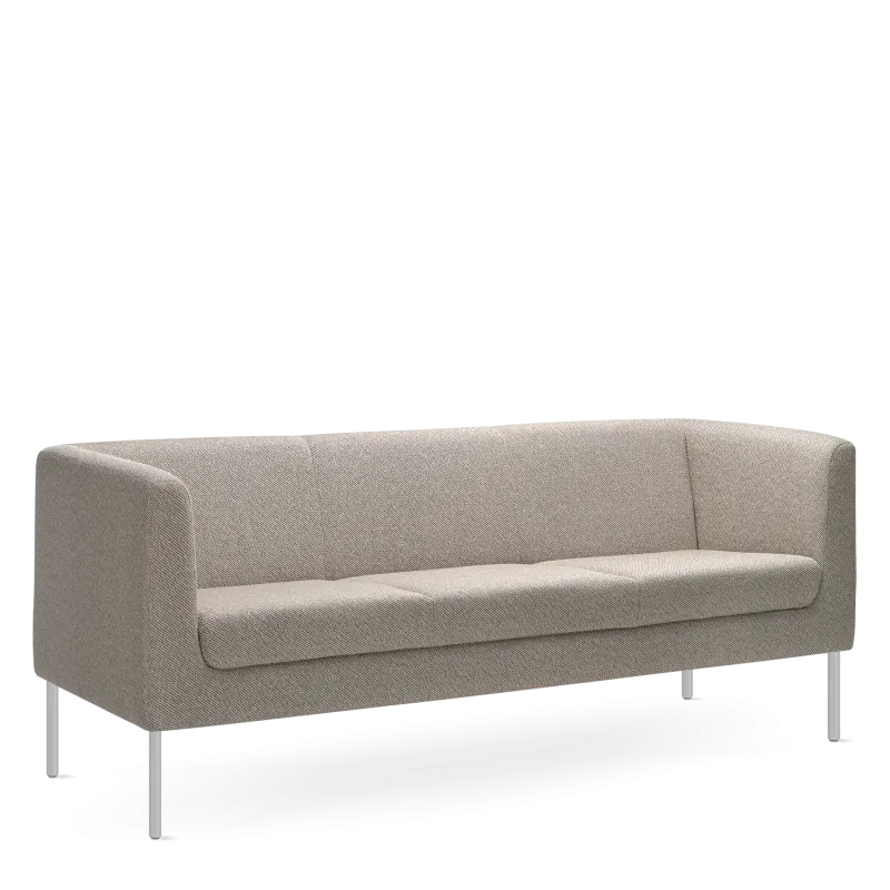 Quadra bringt einen modernen Blick auf klassische Lounge-Sitzmöbel. Die Serie umfasst einen Sessel sowie Zwei- und Dreisitzer-Sofas, die mit Schwerpunkt auf Komfort und Vielseitigkeit entworfen wurden. Für die Serie Quadra sind rechtwinklige Formen mit fein abgerundeten Kanten und schlanke Metallbeine charakteristisch, die die gesamte Konstruktion optisch entlasten. Dank neun Farben des Gestells und des breiten Angebots an Polsterungen lässt es sich leicht an jedes Interieur anpassen. Die Verbindung von attraktivem Preis und zeitlosem Design macht Quadra zur idealen Wahl insbesondere für öffentliche Räume – von Rezeptionen über Cafés und Hotellobbys bis hin zu Entspannungsbereichen in Büros.