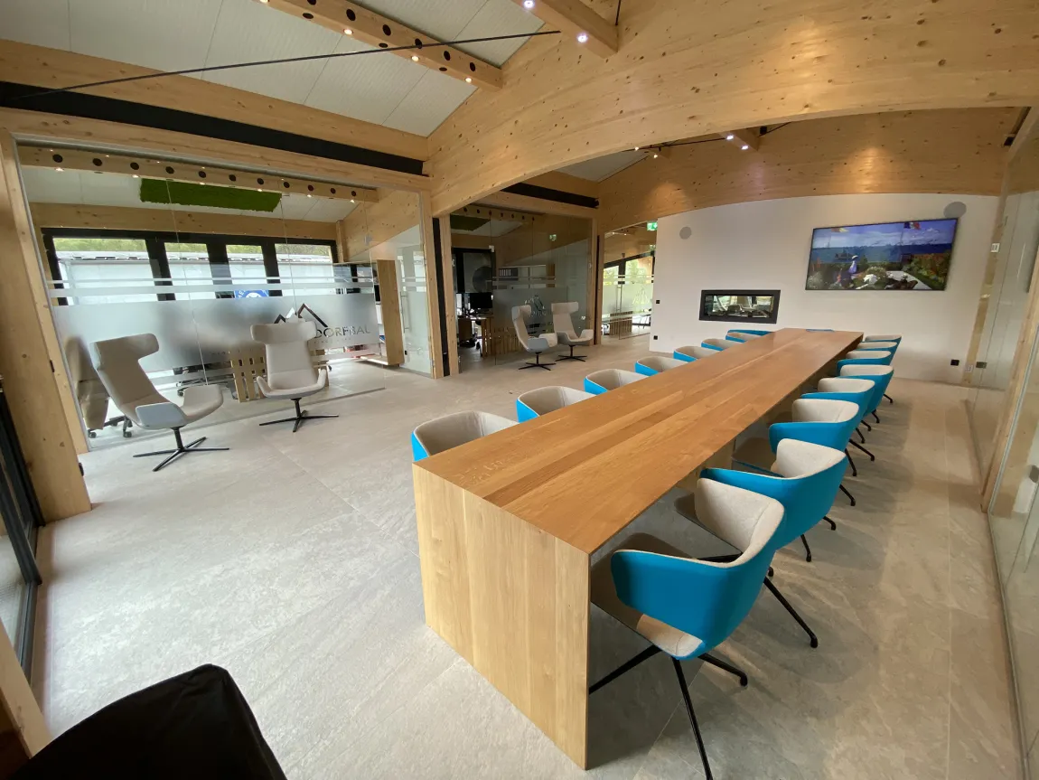 Almdorf Bauträger is an Austrian family-run construction company specialising in wooden houses, such as chalets and holiday resorts. The meeting room in the company’s new offices in Stadl an der Mur is furnished with our Flexi P conference armchairs. The lounge zone includes our Flexi Lounge armchairs, which are available to both employees and guests.