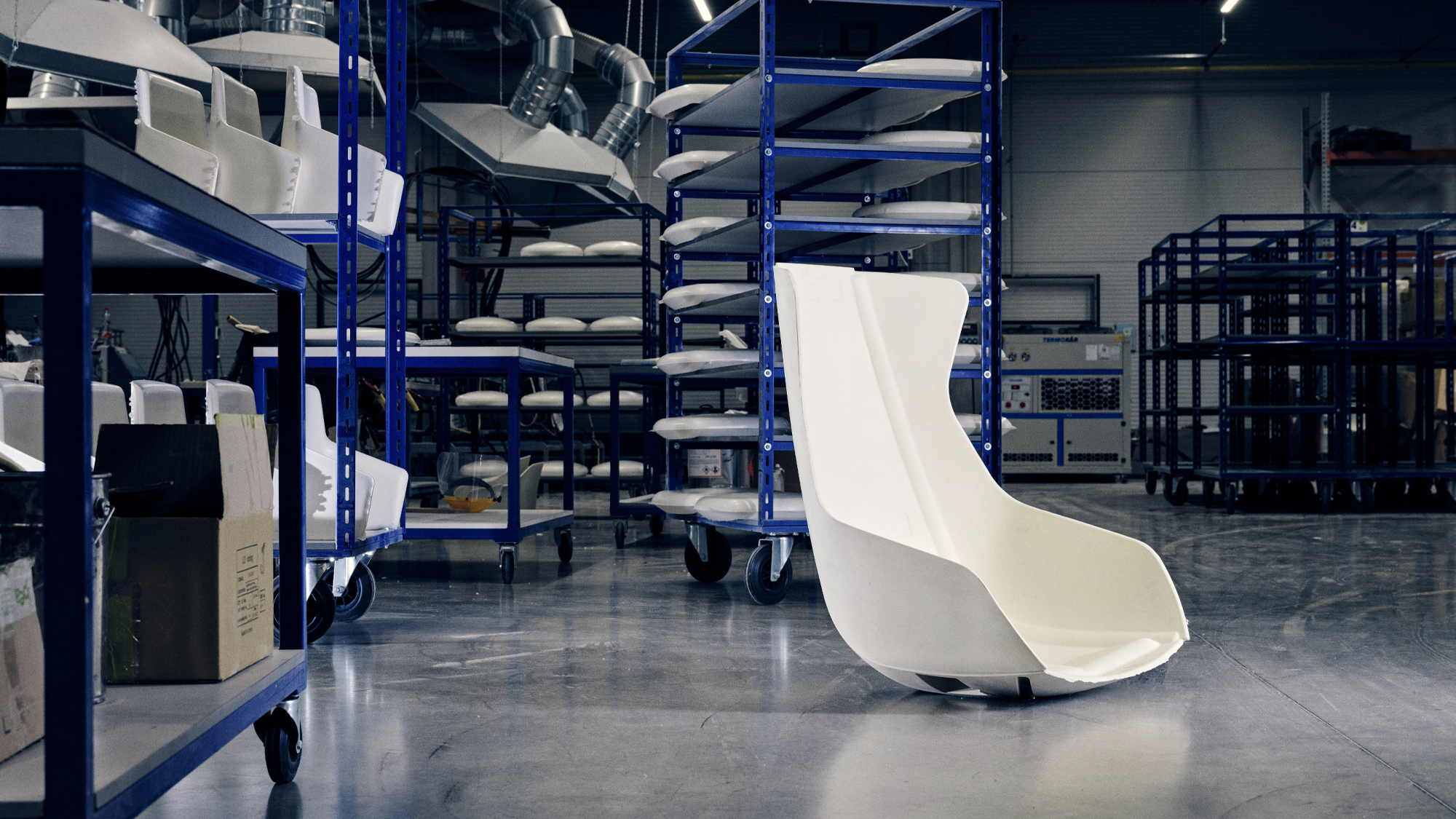 Die Polyurethan-Teile der Sessel, einschließlich der Schalen aus Hart-Polyurethan, sowie die Vierfuß-Stahlgestelle stellen wir direkt bei uns in Boskovice her. Die vierstrahligen Kreuze und Wippmechaniken stammen aus der Produktion in der Europäischen Union. Die lokale und europäische Produktion ermöglicht es uns, eine hohe Qualität, kurze Lieferketten und verantwortungsvolle Produktionsstandards zu beibehalten.