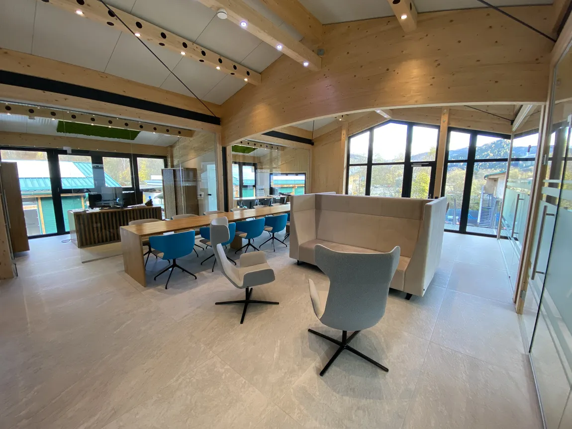 Almdorf Bauträger ist ein österreichisches Familienbauunternehmen, das sich auf Holzbauten, insbesondere für Hütten, Apartments und Ferienanlagen, spezialisiert hat. Den Sitzungsraum im neuen Bürobereich der Gesellschaft in Stadl an der Mur haben wir mit unseren Flexi P Konferenzstühlen ausgestattet. Auch der Loungebereich wurde nicht zurückgelassen, wo unsere Flexi Lounge Sessel sowohl für Mitarbeiter als auch für Besucher zur Verfügung stehen.