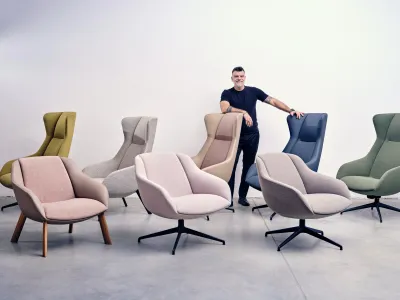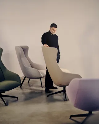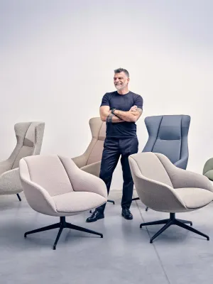 Die Konstruktion des Sessels arbeitet mit unterschiedlicher Dicke und Steifigkeit des Schaums. Im Sitzteil wird bis zu 14 cm weicherer Schaum verwendet, während die festeren Kanten die notwendige Unterstützung bieten. Der Komfort kommt aber nicht nur von der Polsterung – er hängt auch von den durchdachten Formen, Proportionen und dem gesamten ergonomischen Design des Sessels ab. Das macht das Sitzen auch bei längerem Gebrauch bequem und stabil.