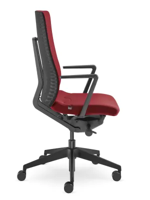 Modèle 452 a le dossier tapissé avec le tissu en maille 3D à double structure ShapeKnit (FM), en couleur grise ou noire, le siège de ces modèles est tapissé avec le tissu One de couleur noire et les panneaux rouge sur les côtés.
