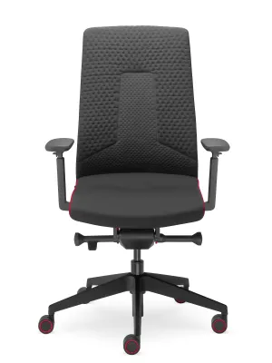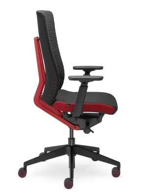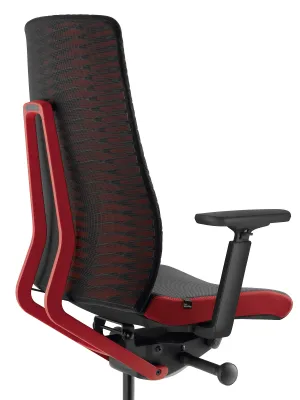 Modèle 452 a le dossier tapissé avec le tissu en maille 3D à double structure ShapeKnit (FM), en couleur grise ou noire, le siège de ces modèles est tapissé avec le tissu One de couleur noire et les panneaux rouge sur les côtés.