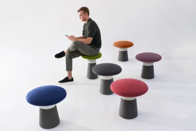 Funghi apporte à tous les espaces un design ludique inspiré d'une forme de champignon. Disponible en deux tailles, différentes couleurs et types de rembourrage, et un piétement blanc, noir ou gris au choix. Léger et adaptable, ce tabouret créatif convient aux bureaux, aux espaces ouverts et aux zones de détente.