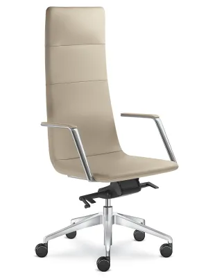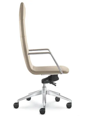 Les accoudoirs en aluminium poli optionnels redonnent au fauteuil un aspect de luxe tout en augmentant le confort d'assise. Ce détail accentue le design minutieux de toute la série.