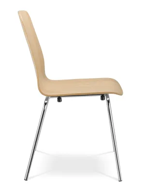 Les chaises avec une assise en bois et un dossier en contreplaqué de hêtre sont dans une finition laquée incolore avec la possibilité de teindre dans des teintes sélectionnées (W).