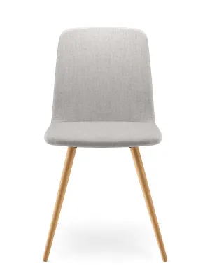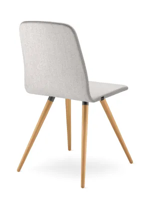 Les chaises avec une assise en bois et un dossier en contreplaqué de hêtre sont dans une finition laquée incolore avec la possibilité de teindre dans des teintes sélectionnées (W).